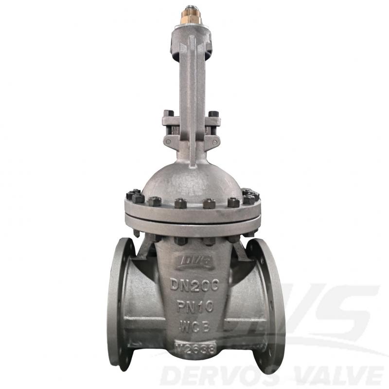 DN200 PN10 Cast Steel Gate Valve is made according to EN1984 standard. The valve body is made of A216 WCB+STL. It has the structural characteristics of Bonnet , Flexible Wedge. Its connection mode is EN1092-1 / B. And it has hand wheel operation mode.