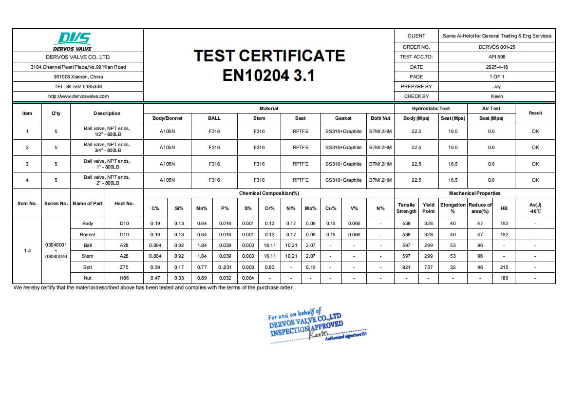 EN 10204 3.1-D250304 DERVOS