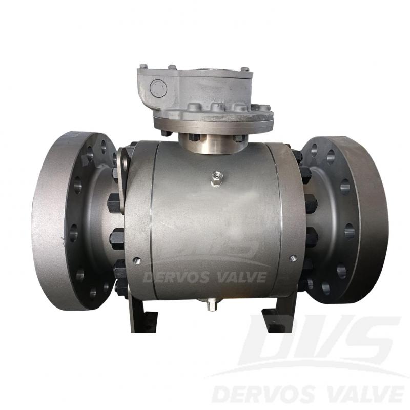 Worm wheel8" 900LB Trunnion Ball Valve is made according to API 6D standard. The valve body is made of A105. It has the structural characteristics of Three-Piece Side Entry Trunnion Mounted Ball Valve with Full Bore Design, Fire-Safe & Anti-Static Features, Blowout-Proof Stem, and Double Block and Bleed (DBB). Its connection mode is RTJ. And it has Worm wheel operation mode.