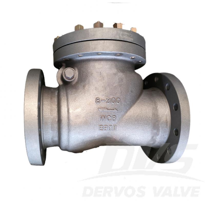 The swing type check valve, designed with PN40 RF flange, bolted cover, is made of cast steel 1.0619 and ss316 trim material. The full bore check valve can be manufactured per client's special requests. Quick Detail Type Non Return Valve ( Check Valve) Nominal Size DN 150 NominalPressure PN 40 Construction BB, Swing Type Disc, Exnternal Pin Connection Raised Face Flange Design & Manufacture DIN 3356 End to End EN 558 Connection EN 1092 Test & Inspection EN 12266 Body Material GS-C25 (1.0619) ApplicableTemp -29℃~+425℃ Media W.O.G. Material No Part Name Carbon steel to ASTM Alloy steel to ASTM Stainless steel to ASTM WCB LCB WC6 WC9  C5 CF8 CF8M CF3 CF3M 1 Body A216 WCB A350 LCB A217 WC6 A217 WC9 A217 C5 A351 CF8 A351 CF8M A351 CF3 A351 CF3M 2 Seat Ring A105 A350 LF2 A182 F11 A182 F22 A182 F5 A182 F304 A182 F316 A182 F304L A182 F316L 3 Disc nut A182 F304 A182 F304 A182 F316 A182 F304L A182 F316L 4 Disc washer A182 F304 A182 F304 A182 F316 A182 F304L A182 F316L 5 Disc A216 WCB A350 LCB A217 WC6 A217 WC9 A217 C5 A351 CF8 A351 CF8M A351 CF3 A351 CF3M 6 Hinge A216 WCB A350 LCB A217 WC6 A217 WC9 A217 C5 A351 CF8 A351 CF8M A351 CF3 A351 CF3M 7 Hinge pin A182 F304 A182 F304 A182 F316 A182 F304L A182 F316L 8 Yoke A216 WCB A350 LCB A217 WC6 A217 WC9 A217 C5 A351 CF8 A351 CF8M A351 CF3 A351 CF3M 9 Bonnet nut A194 2H A194 4 A194 7 A194 8 10 Bonnet bolt A193 B7 A193 L7 A193 B16 A193 B8 11 Gasket Stainless Steel Spiral Wound graphite or Stainless Steel Spiral Wound PTFE 12 Cover A216 WCB A350 LCB A217 WC6 A217 WC9 A217 C5 A351 CF8 A351 CF8M A351 CF3 A351 CF3M 13 Hook screw Steel 14 Name Plate Stainless steel or Aluminum 15 Rivet Stainless steel or Aluminum Other Material ( Alloy 20, ANSI 321, Monel Hastelloy, etc)are available on request Our Service A good customer service is as valuable as product itself. In Dervos, we will offer a full range of customer service to make you feel easy when doing business with us. Providing weekly production report When production begins, you will get production report weekly, so that you can have good command of product status and report to your customer at the meantime. Offering warranty of 18 months 18 months warranty period will be offered after shipment, no concern to purchase valve from Dervos. Providing solutions within 3-days for complaints All the complaints will be solved within 3 days, in this case, you can timely reply and solve problems for your customer, to relax them even when complaints happening.